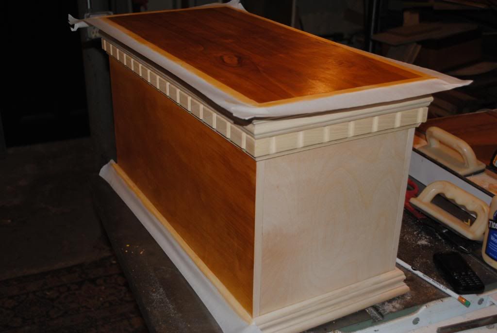 Now for a finish, to set the birch apart from the molding , I first tapped off the surface: